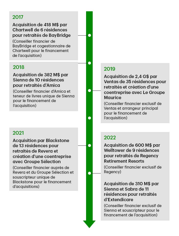 « Une résidence bien conçue regroupe une multitude de commodités, de services de soins et de programmes d’enrichissement, qui créent une communauté fondée sur la connexion personnelle et le bien-être. À Valeurs Mobilières TD, nous nous engageons à contribuer à créer ces environnements pour le nombre croissant de personnes âgées au Canada en offrant des conseils stratégiques aux entrepreneurs et aux entreprises et en les aidant à atteindre le coût du capital le plus bas possible afin d’accélérer la prestation de soins de qualité. »