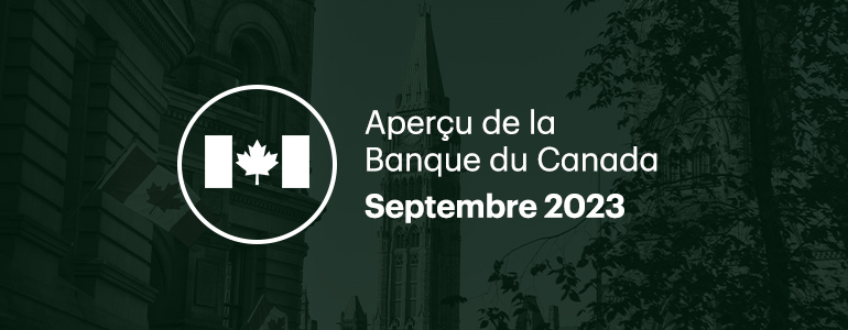 La Banque du Canada (BdC) a suivi la voie de la moindre résistance en maintenant le taux du financement à un jour à 5,00 % en septembre, sans fermer la porte à de futures hausses de taux. La majeure partie de l’incertitude entourant la décision s’était déjà dissipée après la contraction surprise du PIB au deuxième trimestre qui a été annoncée le 1er septembre. Cela a atténué la plupart (sinon la totalité) des spéculations entourant une hausse des taux en septembre, et il aurait été difficile pour la Banque de justifier une nouvelle hausse des taux, étant donné les preuves plus concrètes que les taux plus élevés contribuent déjà à ralentir la demande. Toutefois, la Banque n’a pas éliminé les hausses, car elle continuera d’évaluer si les données entrantes sont conformes à l’atteinte de la cible d’inflation de 2 %.